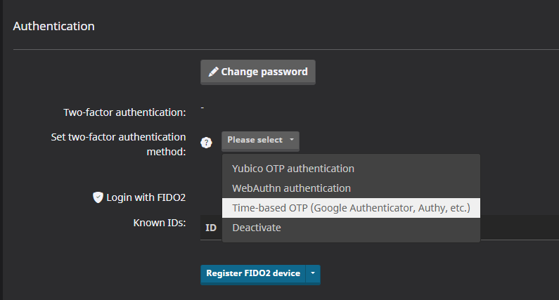 Auf der ersten Seite (Reiter Mailbox) wählen Sie im Dropdown-Menü "Time based OTP" aus: