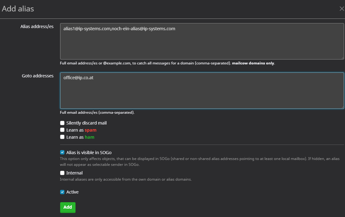 Um Alias Adressen anzulegen, müssen Sie sich als Domain-Administrator einloggen: