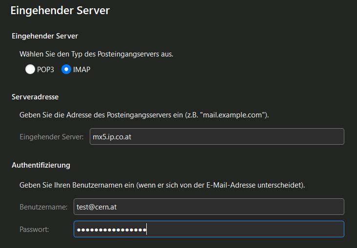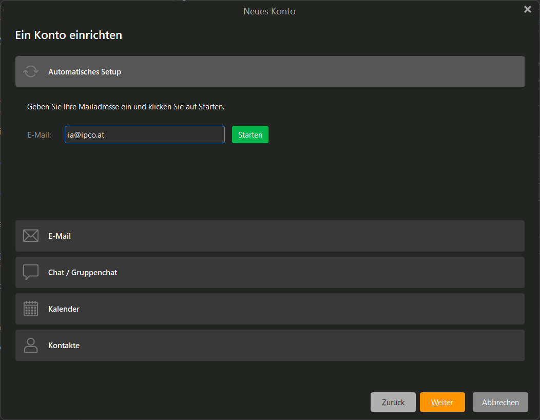 Nach Klick auf Weiter sollten die benötigen Parameter automatisch erkannt werden. Dies gilt nicht, wenn sich ihre Domain noch im Migrationsprozess befindet. DAnn müssen Sie die Daten händisch angeben: