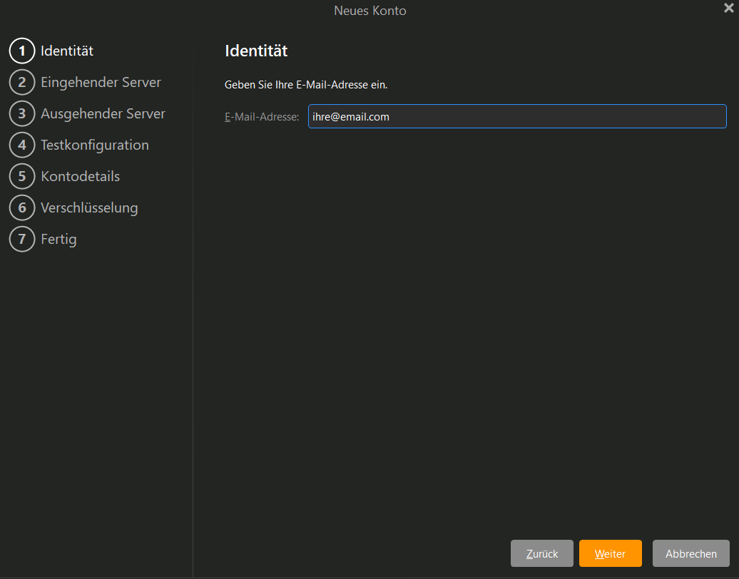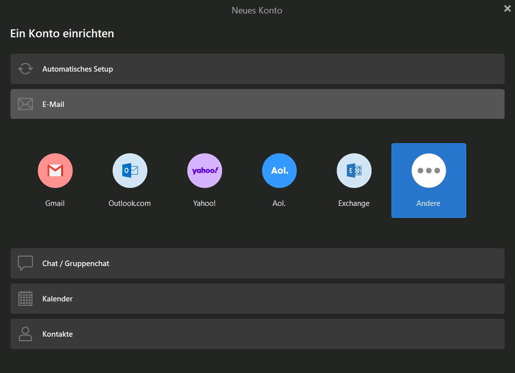 Wählen Sie im Menü "Konten" aus und klicken Sie auf "Konto hinzufügen"