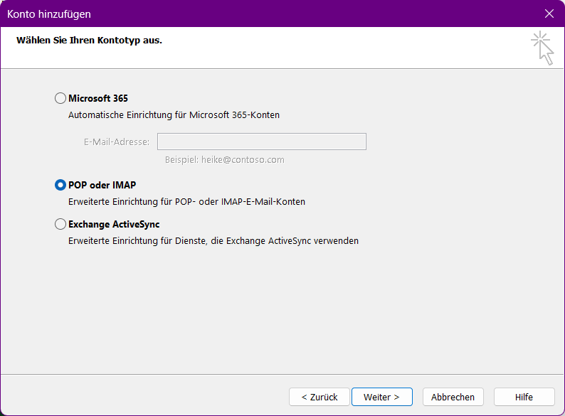 Wählen Sie "POP oder IMAP"