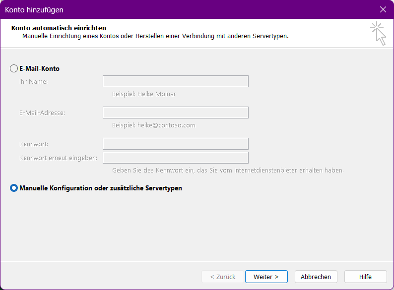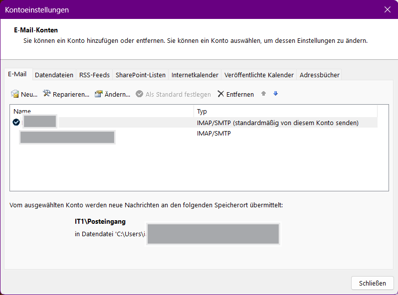 Einrichtung unter Outlook (Alternative)