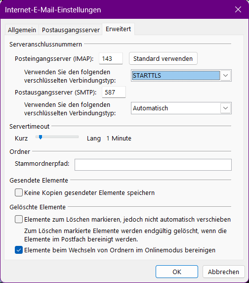 IMAP 143, AUTOMATISCH (oder STARTTLS)