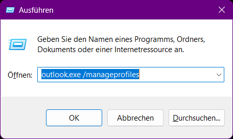 outlook.exe /manageprofiles