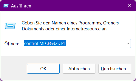 control MLCFG32.cpl