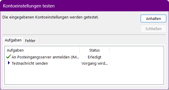 - Kontotyp "IMAP" !!
