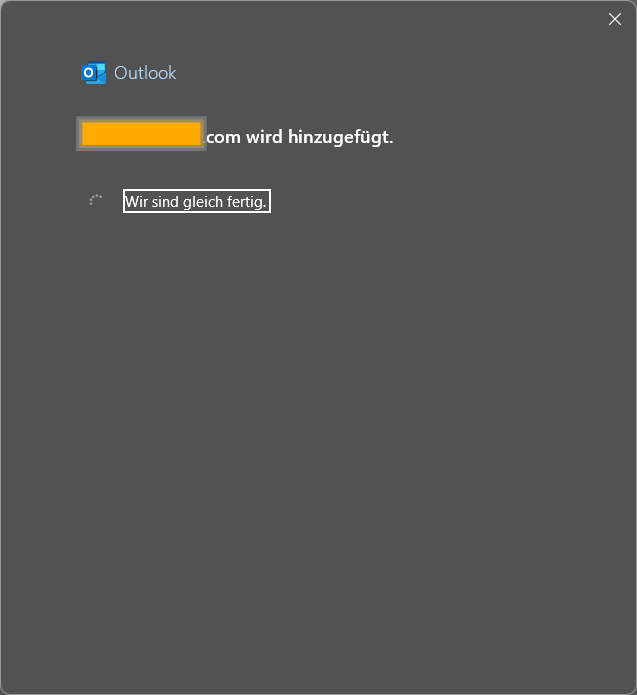 B) Outlook nimmt die Einstellungen vom alten Konto an und schließt das Fenster - siehe unten: ➡️ Fall B